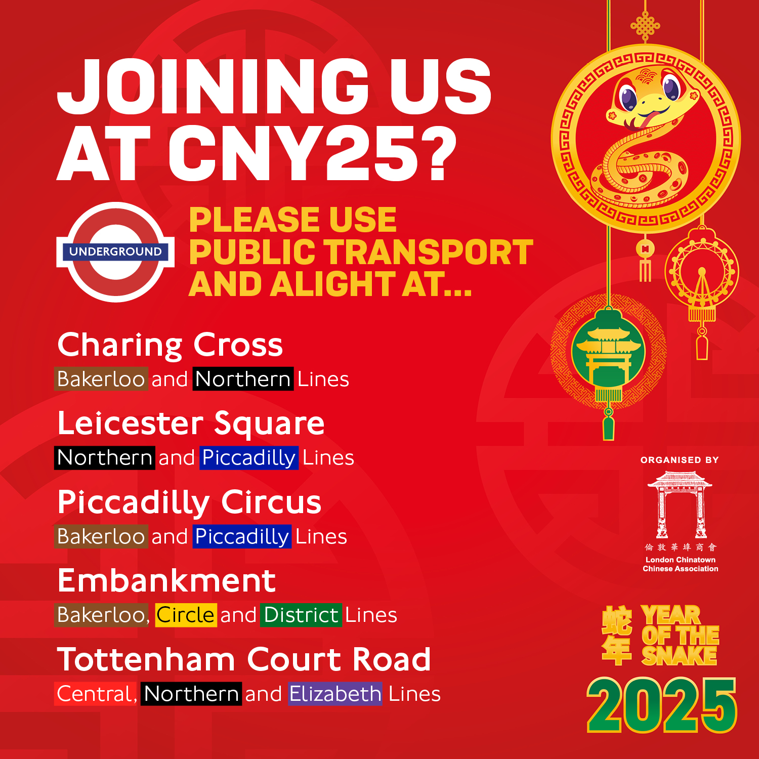 The area around Chinatown and Trafalgar Square gets very busy during London's Chinese New Year celebrations, so be sure to plan your route in advance using Transport for London's Journey Planner.